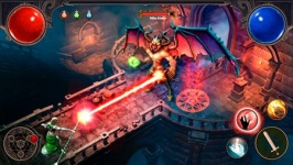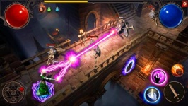 यहां चरित्र चयन और अनुकूलन की कोई संभावना नहीं है, आपका रास्ता तुरंत एक कालकोठरी में शुरू होता है। कुछ ही चरणों में आपको दिखाया जाएगा कि कैसे बुरी आत्माओं से लड़ना और उन्हें मारना है। जो काफी सरल है... सर्वप्रथम। नायक को कंकाल के पास लाओ और वह स्वतः ही उसे तलवार से मारना शुरू कर देगा। यदि आप एक जादू के साथ हड़ताल करना चाहते हैं, तो नीचे दाईं ओर संबंधित बटन दबाएं। नीचे बाईं ओर से जॉयस्टिक मूवमेंट एक मोबाइल रोल-प्लेइंग गेम कंट्रोल क्लासिक है।