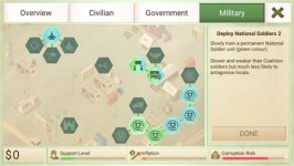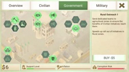 Rebel Inc राजनीतिक सिम्युलेटर। गेम एंड्रॉइड डिवाइस पर उपलब्ध है।