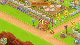 गांव और फार्म मोबाइल प्लेटफॉर्म के लिए एक मजेदार फार्म। गेम में आप कार्टून शैली में चमकीले ग्राफिक्स देखेंगे। संगीत इसलिए चुना जाता है ताकि बादल भरे, बरसात के दिन भी खुश हो जाएं।